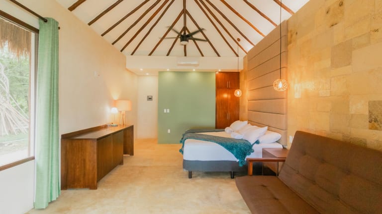 Die Zimmer in der Unterkunft Mayan Playa Bacalar sind mit einer Klimaanlage, einem Schreibtisch, einem Flachbild-TV, einem eigenen Badezimmer, Bettwäsche, Handtüchern und einer Terrasse mit Seeblick ausgestattet. Zudem verfügt jedes Gästezimmer über einen Kleiderschrank.