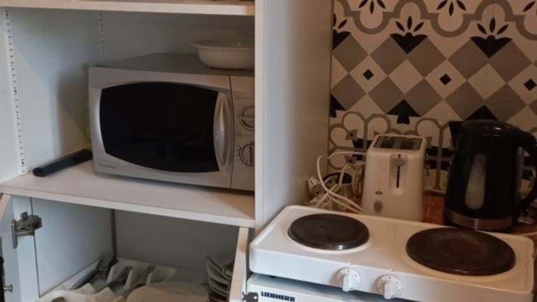 Die Zimmer sind mit einem Balkon ausgestattet, der einen Blick auf den Garten bietet. Jedes Zimmer verfügt über einen Kühlschrank, einen Ofen, eine Kaffeemaschine, ein Bidet, kostenlose Pflegeprodukte sowie einen Schreibtisch. Die Badewannen in den eigenen Badezimmern sind mit Haartrocknern und Hausschuhen ausgestattet. Für die Gäste sind Bettwäsche und Handtücher vorhanden.