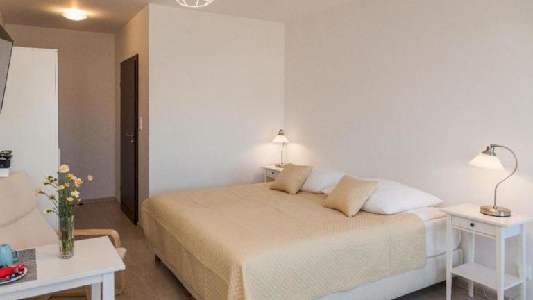 Die Zimmer sind hell und geräumig gestaltet und verfügen über kostenfreies WLAN, einen Sat-TV, einen Kühlschrank sowie ein eigenes Bad.