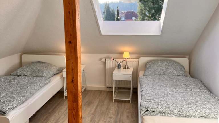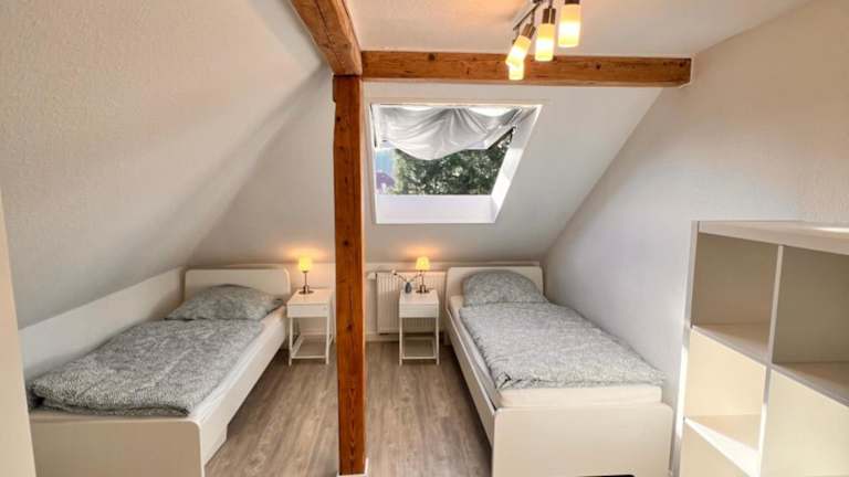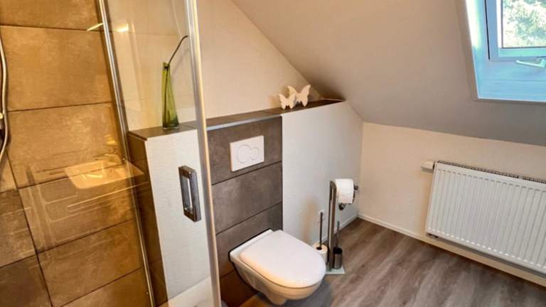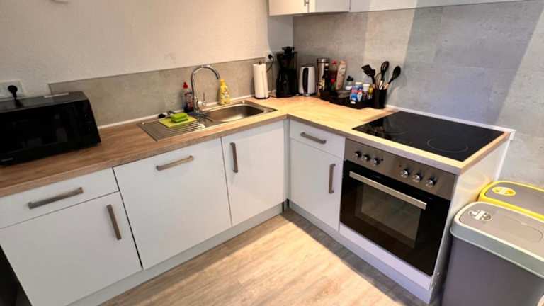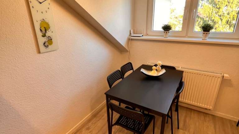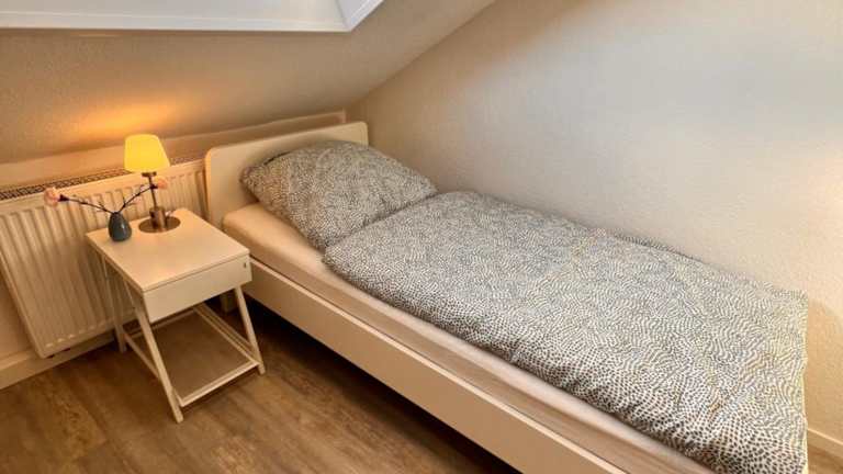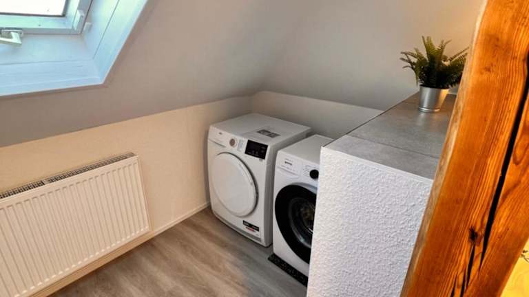Die Ferienwohnung verfügt über zwei Schlafzimmer, eine Küche mit Kühlschrank und Geschirrspüler, sowie über ein Badezimmer mit Dusche, Haartrockner und Waschmaschine. Handtücher und Bettwäsche werden bereitgestellt.