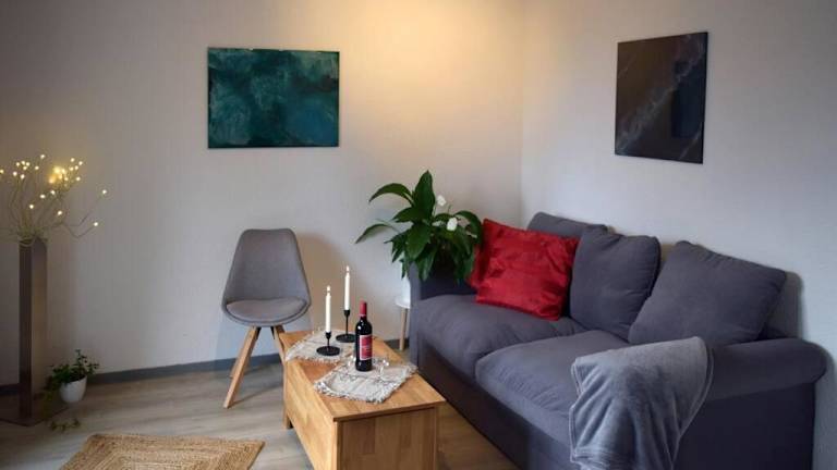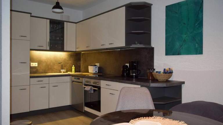 Die Ferienwohnung umfasst ein Schlafzimmer, ein Wohnzimmer, ein Badezimmer mit Dusche sowie eine gut ausgestattete Küche mit Kühlschrank und Geschirrspüler. Zur Ausstattung gehören zudem ein Flachbild-TV, Büromöglichkeiten sowie Balkon und Gartenmöbel. Handtücher und Bettwäsche werden bereitgestellt.