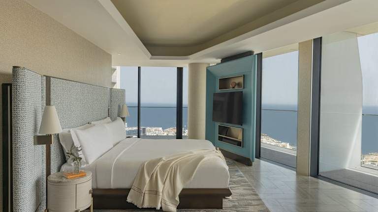 Die klimatisierten Zimmer verfügen über einen Balkon, teilweise mit Meerblick. Zur Ausstattung gehören ein Kingsize-Bett, ein Safe, eine Minibar, eine Tee-/Kaffeemaschine, ein Flachbildfernseher und eine Videokonsole. Gratis Wifi steht zur Verfügung und die Badezimmer sind mit einer Dusche, Haartrockner und Bademänteln ausgestattet. Die Unterkunft bietet auch rollstuhlgerechte Zimmer.