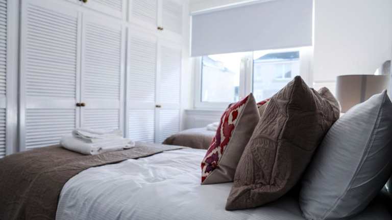 Die Ferienwohnung besteht aus 2 Schlafzimmern, einem Wohnzimmer, einer voll ausgestatteten Küche mit Kühlschrank und Wasserkocher sowie einem Badezimmer mit Dusche und kostenlosen Pflegeprodukten. Handtücher und Bettwäsche werden zur Verfügung gestellt.