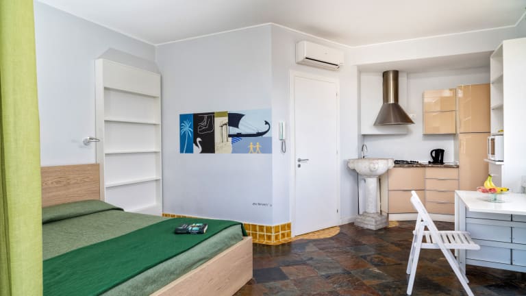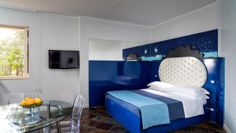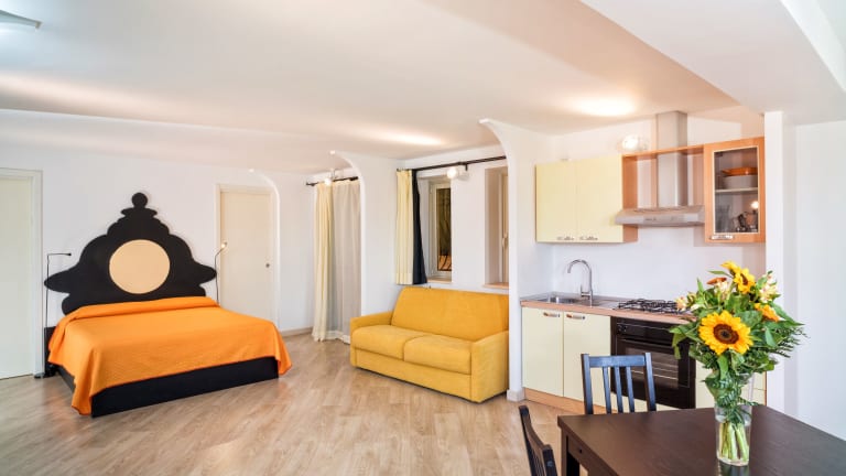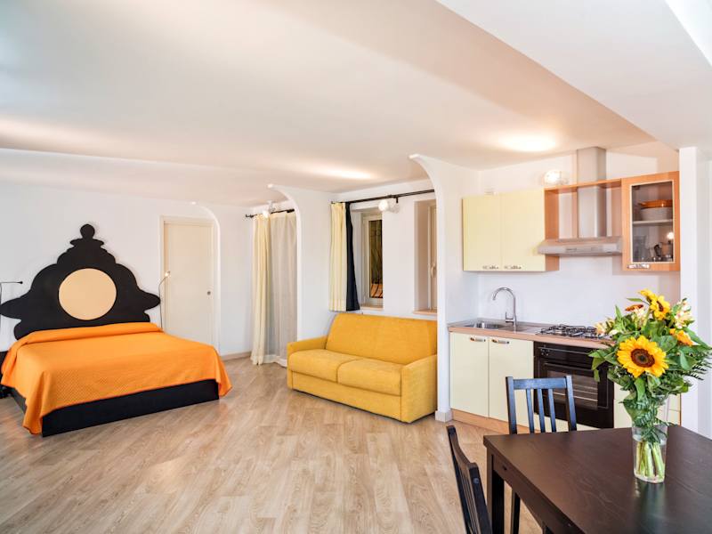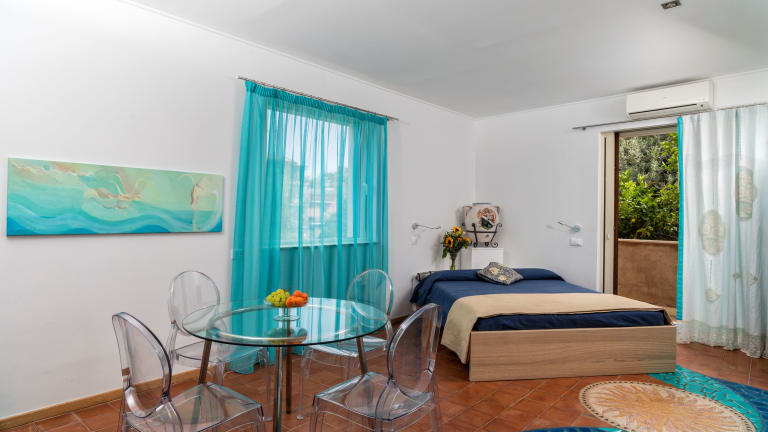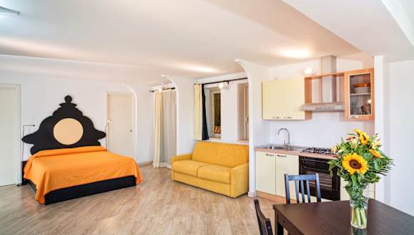 Die Apartments sind mit Klimaanlage, einem Flachbild-TV sowie einer Küchenzeile mit Mikrowelle und Kühlschrank ausgestattet. Einige Zimmer bieten einen Blick auf das Tyrrhenische Meer.