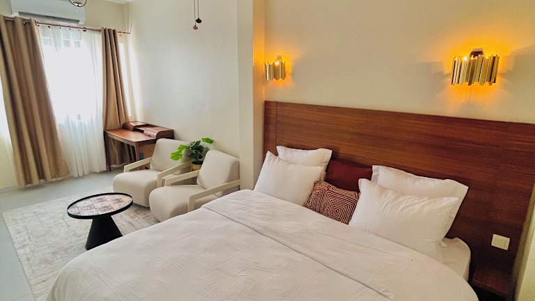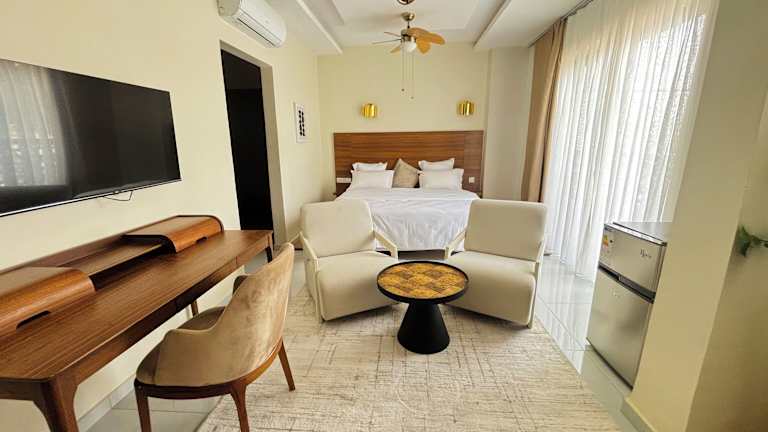 Bei einem umfangreichen Frühstück werden verschiedene Optionen wie kontinentale, amerikanische oder halal-zubereitete Mahlzeiten angeboten. Das hoteleigene Restaurant serviert afrikanische, amerikanische und lokale Küche, wobei auf Anfrage auch vegetarische und halal-zubereitete Gerichte erhältlich sind.