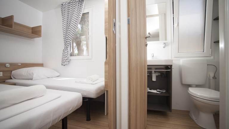 Die Mobile Homes sind mit einer Terrasse, einem Sitzbereich, einem Flachbild-TV sowie einer voll ausgestatteten Küche mit Kühlschrank und Mikrowelle versehen. Ein eigenes Badezimmer mit Dusche und kostenlosen Pflegeprodukten ergänzt die Ausstattung.