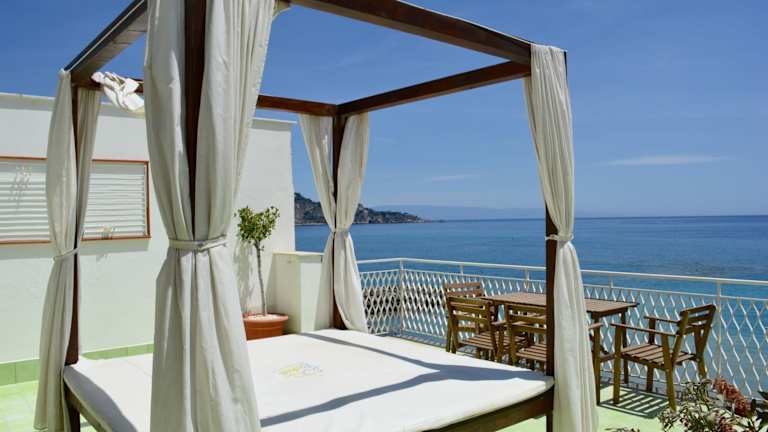 Das Hotel bietet ein Café vor Ort. Für weitere gastronomische Optionen sind die umliegenden Strände und das Zentrum von Giardini-Naxos gut erreichbar.