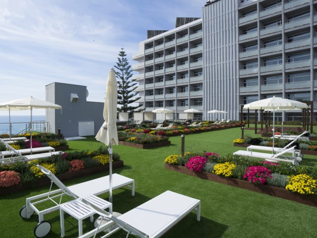 Zimmerausttatungen: • Direkt an der Strandpromenade und am Meer • Professioneller und engagierter Service • Pool und große Terrasse • Gartenanlage auf verschiedenen Ebenen mit Jacuzzi • Bar am Pool (nur im Sommer) • Tägliche Animationsprogramme für den Abend • SPA mit beheiztem Innenpool und verschiedene Behandlungen zur Verfügung •Genießen Sie den Spa-Bereich! Klimatisierter Pool, türkisches Bad, Sauna und Extra-Services, einschließlich Massagen. Preise können im Hotel erfragt werden. SPA und Wellness-Behandlungen • Kostenlose Badetücher zur Verfügung. Pfand von 20€ • Check-in: 13.00 Uhr • Check-out: 12.00 Uhr • Raum für die Gepäckaufbewahrung • Aufenthaltsraum und Bar • Kostenloser Fitnessraum