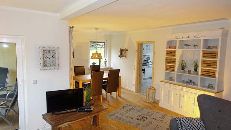 Die Ferienwohnung Meer-Zeit - EG- Treibgut überzeugt durch eine herrliche Aussicht auf den Garten. Es handelt sich um eine Erdgeschoss-Unterkunft mit einem heimeligen Balkon, die perfekt für einen erholsamen Aufenthalt geeignet ist. Der kostenlose Privatparkplatz ermöglicht eine bequeme Ankunft.