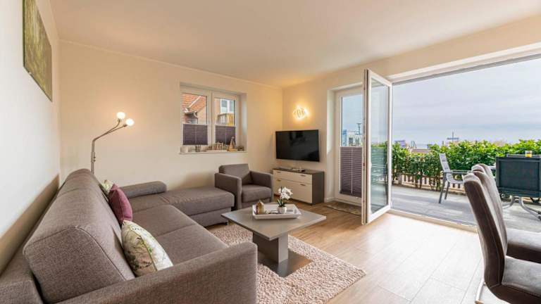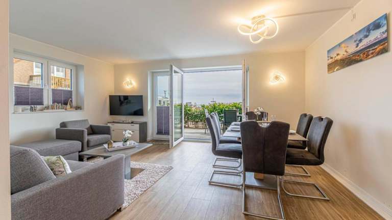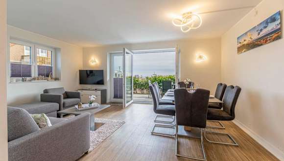 Meeresblick "Morgensonne" Haus 3, WE 35 ist eine strandnahe Ferienwohnung, die über einen Garten verfügt und einen wunderbaren Meerblick bietet. Die Unterkunft überzeugt durch eine Terrasse und bietet den Gästen die Möglichkeit, den kostenlosen Privatparkplatz in Anspruch zu nehmen. Diese Nichtraucherunterkunft ist ideal für ruhige Ferien am Strand.