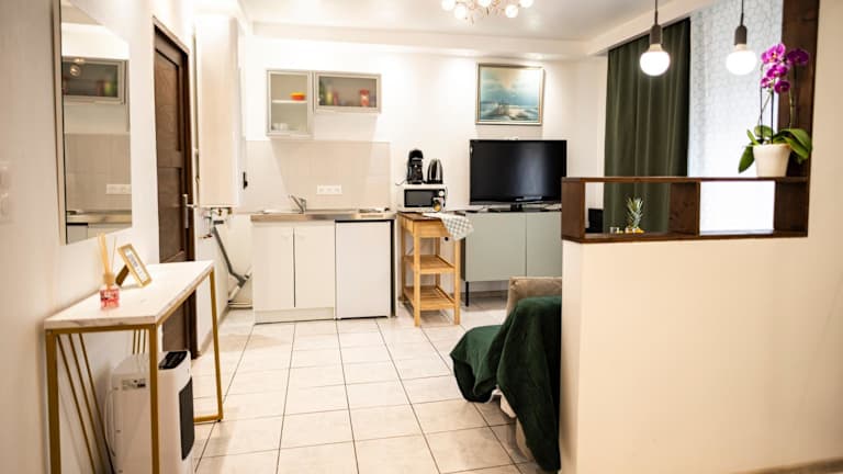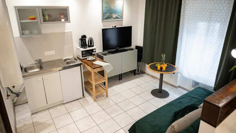 Die Ferienwohnung besteht aus einem Schlafzimmer, einem Wohnzimmer und einer voll ausgestatteten Küche, die mit einem Kühlschrank und einer Kaffeemaschine ausgestattet ist. Das Badezimmer verfügt über eine Dusche und einen Haartrockner. Handtücher und Bettwäsche werden zur Verfügung gestellt. Zudem haben die Gäste die Möglichkeit, den Stadtblick zu geniessen und profitieren von kostenlosem Wifi in der ganzen Unterkunft.
