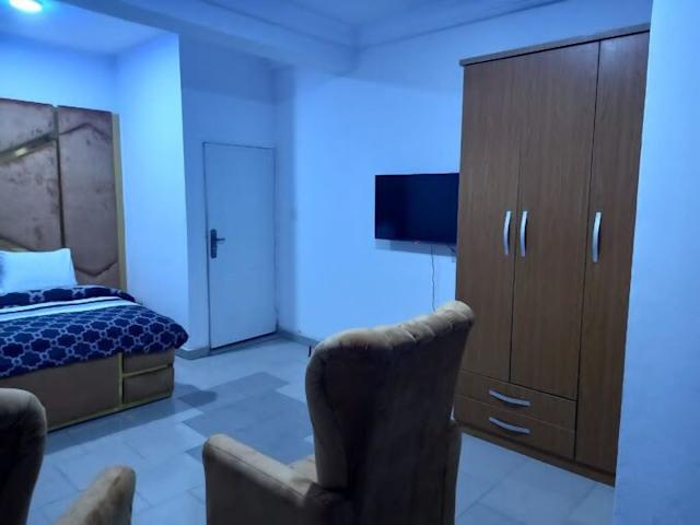 Jedes Zimmer in der Unterkunft Mega Pavilion Apartment Gwarinpa ist mit einem Schreibtisch ausgestattet und bietet ein eigenes Badezimmer mit Dusche sowie kostenlosen Pflegeprodukten. Zudem sind alle Zimmer mit einem Flachbild-TV und Klimaanlage ausgestattet. Bestimmte Zimmer verfügen über einen Balkon und alle Gästezimmer sind mit einem Kleiderschrank versehen.