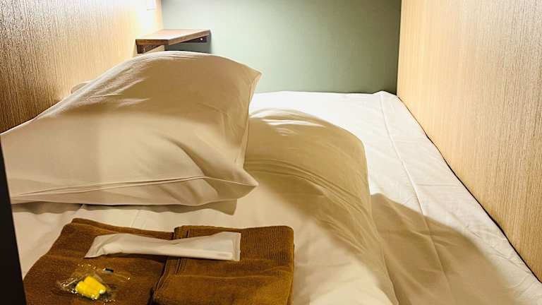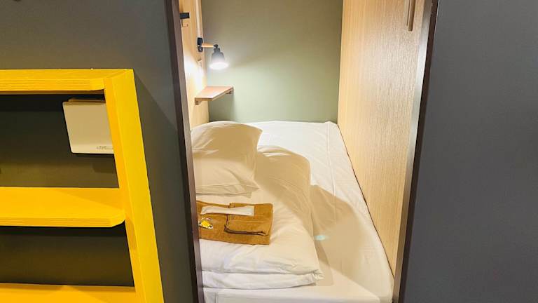 Saubere Einrichtungen und japanischer Charme im Kapselhotel