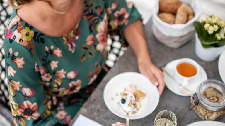 Genuss höchster Qualität von früh bis spät • Langschläferfrühstück mit Bioprodukten, Vitalecke, Teevielfalt u.v.m. von 7.30 bis 10.30 Uhr • Nachmittagsjause ab 14:30 bis 17.00 Uhr, Kuchen, Antipasti, Salate, Säfte…für den kleinen Hunger zwischendurch • Abends: 6-7 Gang-Gourmetmenü oder Vital- und Wellnessmenü zur Wahl, täglich Salat und Käsebuffet …Themenabende, Kochkurse mit dem Küchenchef, u. v. m. • Auch für Allergiker, Veganer, Diabetiker und alle Personen mit Lebensmittelunverträglichkeiten zaubert unser Küchenteam ein hervorragendes Menü.