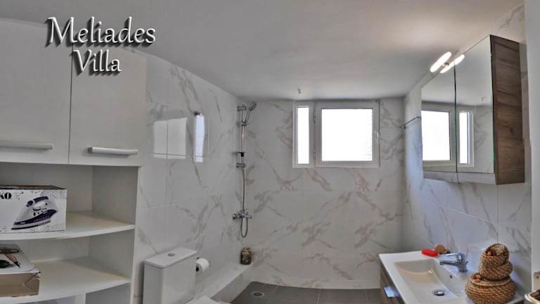 Die Ferienwohnung in der Meliades Villa besteht aus 3 Schlafzimmern und einem Wohnzimmer. Eine voll ausgestattete Küche ist vorhanden, die mit einem Kühlschrank und einer Kaffeemaschine ausgestattet ist. Es gibt zwei Badezimmer, die jeweils mit einer Dusche und einem Haartrockner ausgestattet sind. Handtücher und Bettwäsche werden bereitgestellt.