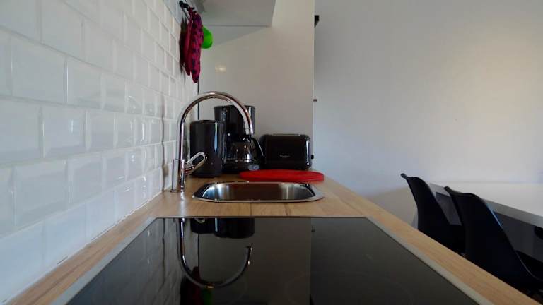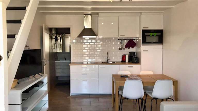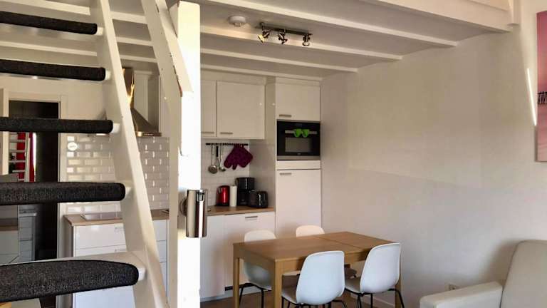 Die Ferienwohnung besteht aus einem Schlafzimmer, einem Wohnzimmer sowie einer voll ausgestatteten Küche mit Kühlschrank und Kaffeemaschine. Das Badezimmer ist mit einer Dusche und einem Haartrockner ausgestattet. Handtücher und Bettwäsche werden bereitgestellt.