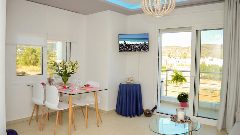 Die Meltemi Beach Apartments sind eine familiengeführte Unterkunft, die durch verschiedene Annehmlichkeiten wie kostenloses Wifi und eine Autovermietung überzeugt. Die minimalistische, helle Einrichtung sorgt für eine heimelige Atmosphäre.
