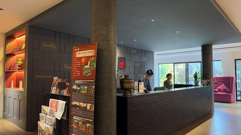 Das Hotel befindet sich im Herzen von Siem Reap, wodurch alle Einkaufs-, Unterhaltungs- und Geschäftszentren bequem zu Fuss erreichbar sind. Die Angkor-Tempel sind in etwa 15 Minuten erreichbar, und der internationale Flughafen liegt ca. 15 km entfernt.
