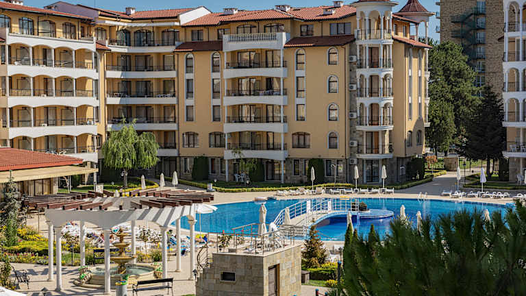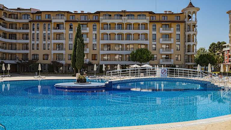 Die Menada Royal Sun Apartments befinden sich an der beliebten Feriendestination Sunny Beach, nur 700 Meter vom Strand entfernt. Die umliegende Gegend bietet zahlreiche Einkaufsmöglichkeiten und Restaurants. Der Wasserpark Action AquaPark ist 2,8 km entfernt, während das Luftfahrtmuseum 25 km vom Hotel liegt. Der nächstgelegene Flughafen ist der Flughafen Burgas, welcher 27 km von der Unterkunft entfernt ist.
