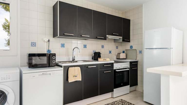 Das Apartment besteht aus 2 Schlafzimmern, einem Wohnzimmer und einer voll ausgestatteten Küche mit Kühlschrank und Kaffeemaschine. Darüber hinaus sind ein Badezimmer mit Dusche und Haartrockner sowie Handtücher und Bettwäsche vorhanden.