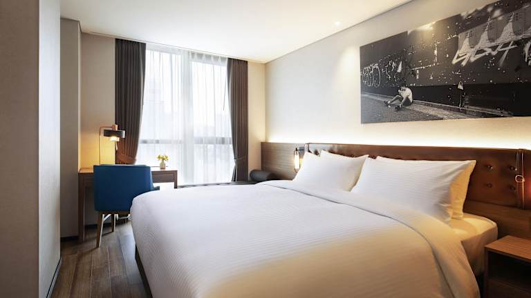 Die Zimmer im Mercure Ambassador Seoul Hongdae verfügen über ein angenehmes Raumklima, das durch eine Heizung gewährleistet wird. Jedes Zimmer ist unter anderem mit einem Flachbild-TV, einem Schreibtisch, einem Kühlschrank sowie kostenfreiem Internetanschluss ausgestattet. Einige Zimmer bieten zudem einen Balkon oder einen Blick auf den Fluss. Die Unterkunft umfasst Familienzimmer sowie Nichtraucherzimmer, und der Zimmerservice kann genutzt werden.