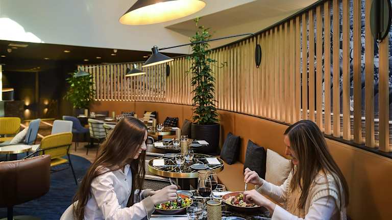 Der gastronomische Bereich umfasst ein Nichtraucherrestaurant sowie eine Bar, in der täglich ein reichhaltiges Frühstücksbuffet und Mittagessen serviert werden. Auf Wunsch werden auch Diät- und vegetarische Gerichte sowie Kindermenüs zubereitet.