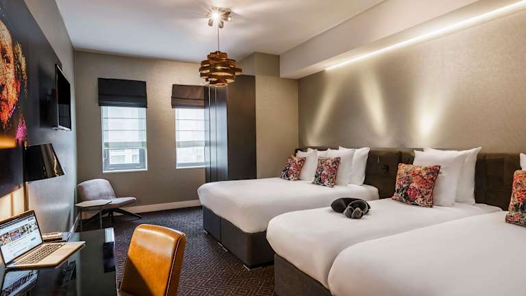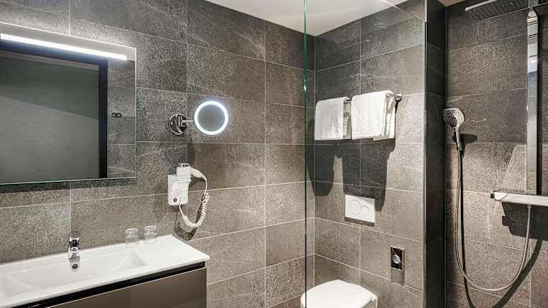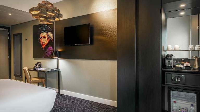 Die Zimmer sind klimatisiert und verfügen über ein Doppelbett, einen Safe, einen Schreibtisch, einen Minikühlschrank und eine Tee-/Kaffeemaschine. Für zusätzlichen Komfort sorgen ein Bügelset, ein Telefon, ein TV-Gerät und kostenfreies WLAN. Die Badezimmer sind mit einer Dusche und einer Badewanne ausgestattet und bieten einen Haartrockner sowie Bademäntel. Es sind auch rollstuhlgerechte Zimmer buchbar.