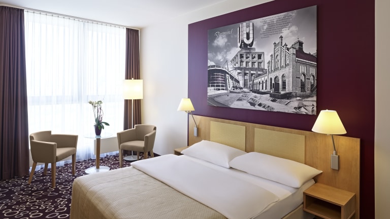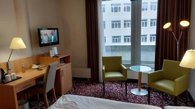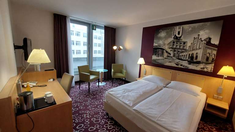 Die Zimmer sind schallisoliert und bieten ein angenehmes Raumklima durch eine Klimaanlage sowie Heizung. Ausgestattet sind sie mit einem Safe, einer Minibar, einem Schreibtisch und einer Tee-/Kaffeemaschine. Ein Bügelset, ein Telefon, ein TV-Gerät und kostenloses Wifi sind ebenfalls vorhanden. Im Badezimmer sind Dusche und Badewanne sowie ein Haartrockner vorhanden. Das Hotel bietet Familien- und Nichtraucherzimmer sowie rollstuhlgerechte Zimmer mit barrierefreiem Bad.