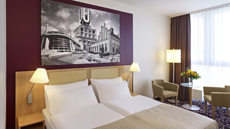 Das Mercure Hotel Dortmund City liegt 5 Gehminuten vom Hauptbahnhof entfernt und bietet einfachen Zugang zu den öffentlichen Verkehrsmitteln. Die U-Bahn-Station Kampstrasse und die Haltestelle des AirportShuttle sind nur 1 Gehminute entfernt. Durch die zentrale Lage erreichen Gäste schnell das Messe-, Kongress- und Veranstaltungszentrum Westfalenhallen.