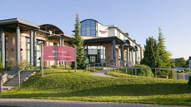 Das Mercure Hotel Greifswald Am Gorzberg liegt im Geschäftspark der Universitätsstadt Greifswald. Die Altstadt von Greifswald ist nur 3,5 km entfernt und kann bequem mit dem Bus erreicht werden. Das Hotel befindet sich in der Nähe des Südbahnhofs und ist gut mit der Autobahn A20 erreichbar. In der Umgebung des Hotels gibt es viele Möglichkeiten zum Wandern und Radfahren.