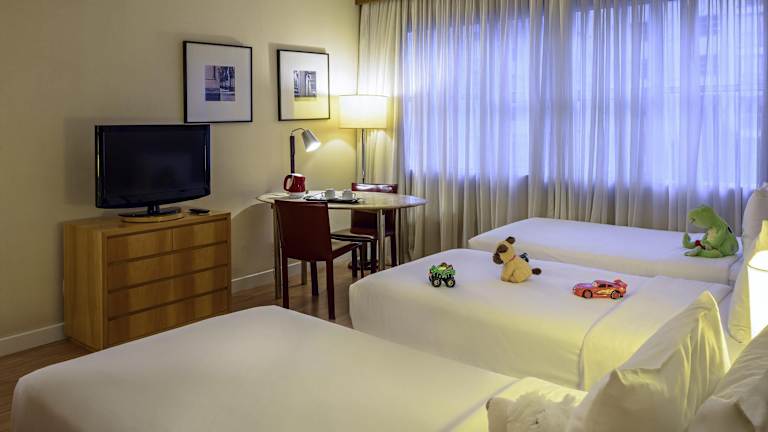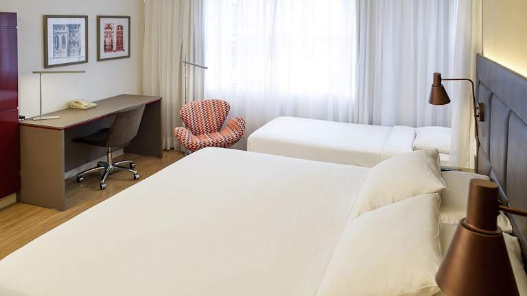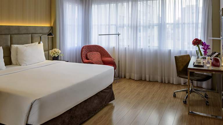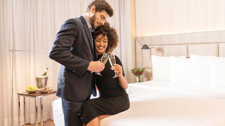 Die Zimmer sind klimatisiert und verfügen über ein Doppelbett, Minibar, Safe, Schreibtisch und einen Flachbild-TV. Ein eigenes Badezimmer mit Dusche und Badewanne, Haartrockner sowie Bademänteln ist vorhanden. Zusätzliche Annehmlichkeiten wie ein Minikühlschrank, Bügelset und kostenloses WLAN runden die Ausstattung ab. Es sind auch rollstuhlgerechte Zimmer verfügbar.