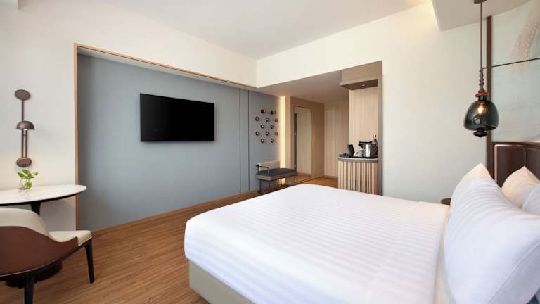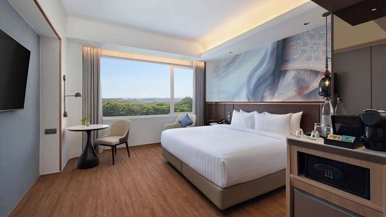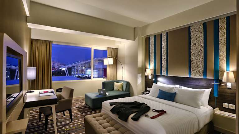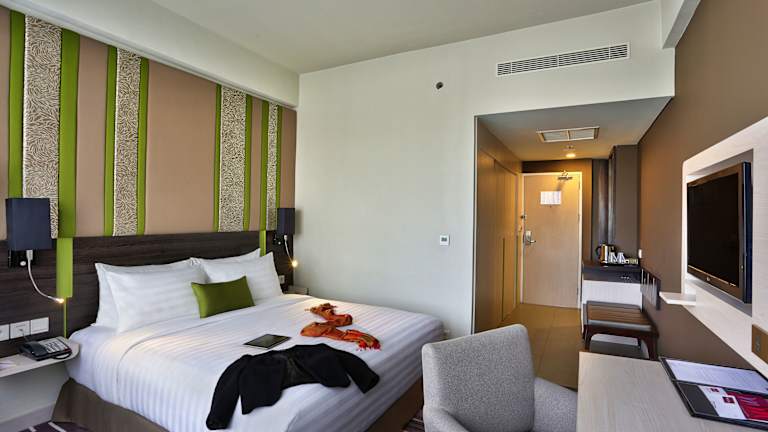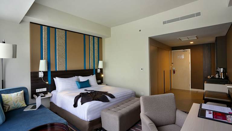 Die Zimmer des Mercure Hotel Serpong Alam Sutera sind klimatisiert und mit Teppichböden ausgestattet. Zur Einrichtung gehören ein Doppelbett, ein Safe, ein Flachbild-Kabel-TV, ein Wasserkessel sowie eine kostenfreie Minibar. Die Badezimmer sind mit einer Dusche und einer Badewanne ausgestattet und bieten kostenlose Pflegeprodukte sowie einen Haartrockner. Zudem sind rollstuhlgerechte Zimmer vorhanden.