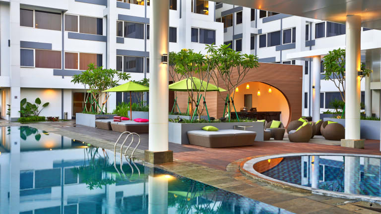 Das Mercure Hotel Serpong Alam Sutera befindet sich im Herzen von Tangerang, nur etwa 500 Meter vom Stadtzentrum entfernt. Die Umgebung bietet Einkaufsmöglichkeiten, Restaurants und Freizeiteinrichtungen. Die Living World Mall ist in fünf Minuten zu Fuss erreichbar.