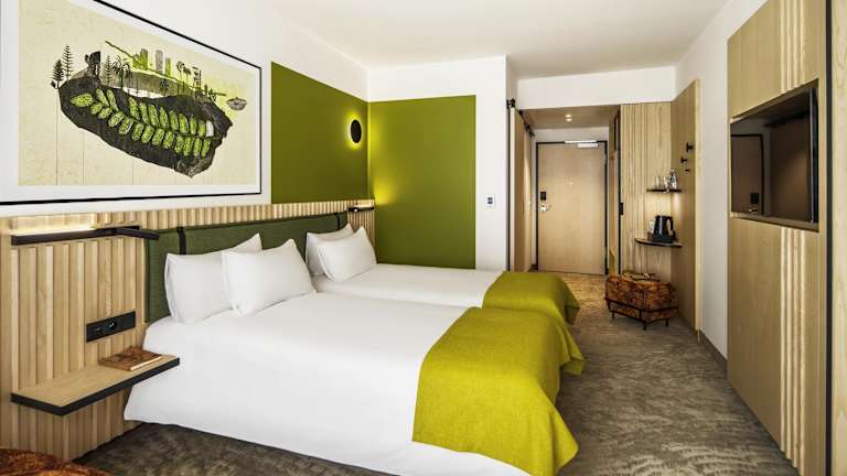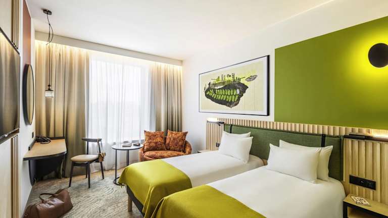 Die Zimmer sind mit moderner Ausstattung versehen, einschließlich Klimaanlage, Schreibtisch, Flachbild-TV, Safe, Minibar sowie Tee- und Kaffeezubereiter. Sie verfügen zudem über ein eigenes Badezimmer mit Dusche und Badewanne. Zur Ausstattung gehören weiterhin Heizung, WLAN, Fernseher, Bettwäsche und Handtücher. Das Hotel bietet allergikerfreundliche Zimmer und Nichtraucherzimmer an.