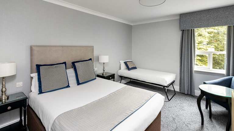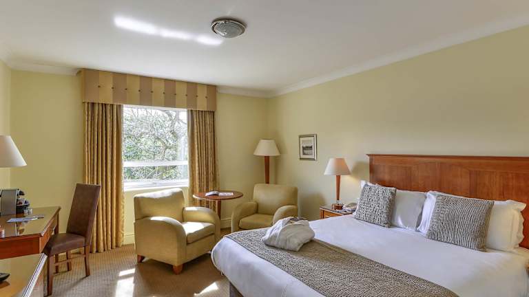 Alle Zimmer sind komfortabel eingerichtet und verfügen über eine Klimaanlage, Heizung, Teppichboden, ein Kingsizebett und ein Sofabett. Sie sind ausgestattet mit einem Schreibtisch, einer Tee-/Kaffeemaschine, einem Telefon mit Direktwahl, einem TV-Gerät, einem Radio, einem Wecker sowie kostenfreies Wifi. Die Badezimmer sind mit einer Dusche, einer Badewanne und einem Haartrockner ausgestattet. Das Hotel bietet zudem rollstuhlgerechte Zimmer und Familienzimmer.