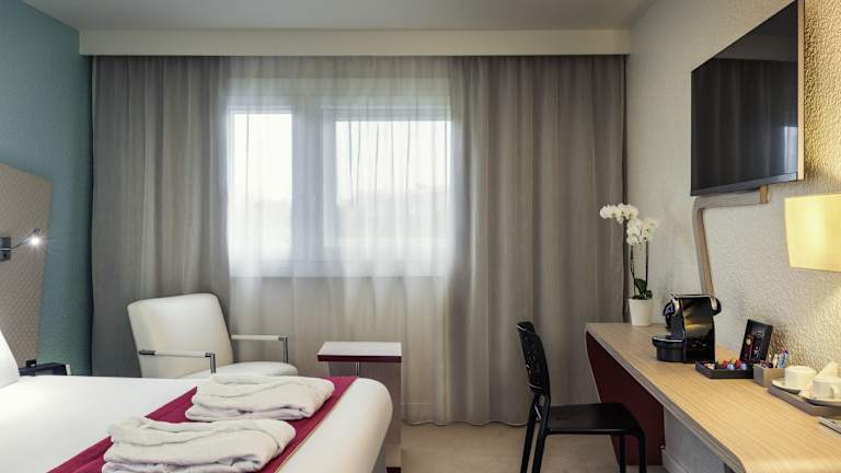 Das Mercure Paris Le Bourget liegt nordöstlich von Paris, etwa 10 Fahrminuten vom Parc des Expositions de Paris-Nord Villepinte und 9 km vom Stade de France entfernt. Es befinden sich zahlreiche Autobahnen in der Nähe, wie A1, A3 und A104, und der Flughafen Roissy-Charles de Gaulle ist in etwa 10 Minuten erreichbar. Auch der Flughafen Le Bourget ist nur eine kurze Fahrt entfernt.