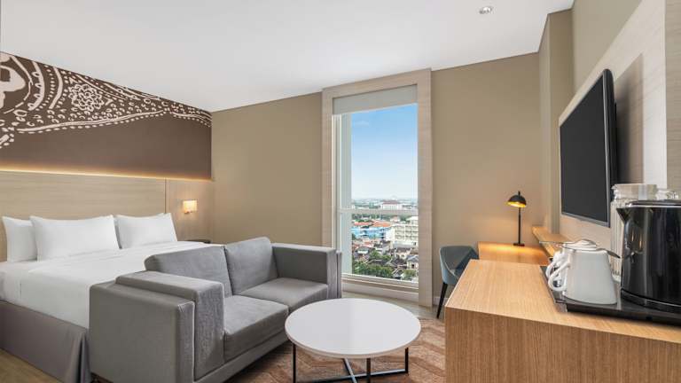 Das Hotel liegt einen kurzen Spaziergang vom Zentrum von Solo entfernt. Die Entfernung zum Stadtzentrum beträgt ca. 500 m, zum Bahnhof sind es ca. 50 m.