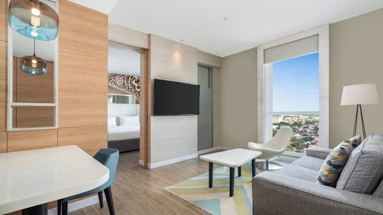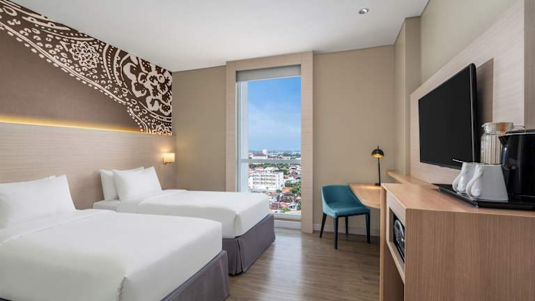 Die Zimmer des Hotels sind mit Klimaanlage, einem Doppelbett oder Kingsize-Bett sowie Zustellbetten ausgestattet. Zu den weiteren Annehmlichkeiten gehören ein Safe, eine Minibar, ein Schreibtisch und eine Tee-/Kaffeemaschine. Jedes Zimmer verfügt über ein TV-Gerät mit Satelliten-/Kabelempfang, WLAN ohne Gebühr, Hausschuhe sowie ein Badezimmer mit Dusche und Badewanne. Es werden sowohl Nichtraucher- als auch Raucherzimmer angeboten, darunter auch rollstuhlgerechte Zimmer.