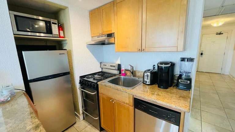 Die Ferienwohnung bietet ein Schlafzimmer, Klimaanlage, einen TV und eine Küche mit Mikrowelle und Herdplatte. Handtücher und Bettwäsche werden zur Verfügung gestellt.