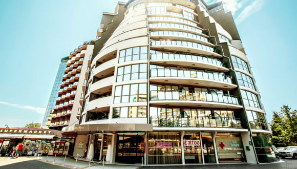 Das smartline Meridian ist ein modernes Hotel im beliebten Ferienort Sonnenstrand an der bulgarischen Schwarzmeerküste. Es ist nur wenige Schritte vom Ufer entfernt, wo Sie weißen Sand und flaches Wasser zum Schwimmen und Paddeln finden. Ein kurzer Spaziergang vom Hotel führt Sie zur Hauptstraße des Resorts, wo Sie familienfreundliche Vergnügungen genießen und lokale Cafés und Restaurants besuchen können. Das Resort ist für seine lebhafte Partyszene bekannt und es gibt viele Nachtclubs und Bars zur Auswahl. Das Hotel verfügt über einen Außenpool, der von Gärten und von einer Sonnenterrasse umgeben ist. Es gibt einen separaten Pool, in dem Kinder planschen können. Sie können im hoteleigenen Fitnessstudio trainieren oder bei einer Partie Tischtennis oder Billard entspannen. Wenn Sie sich entspannen möchten, können Sie Beauty- und Wellnessanwendungen im Wellnessbereich buchen, in dem sich auch ein Türkisches Bad und eine Sauna befinden. Wenn Sie hungrig sind, haben Sie eine große Auswahl an Restaurants. Drei Restaurants bieten Frühstück, Mittag- und Abendessen sowie Snacks den ganzen Tag über an. Bei smartline Meridian können Sie ein Auto mieten und die Umgebung erkunden, wo Sie Sandstrände und felsige Hügel finden. Nach einer kurzen Fahrt erreichen Sie die antike Stadt Nessebar, die sich neben einem von Booten gesäumten Hafen befindet. In der Stadt gibt es zahlreiche Bars und Restaurants, die neben historischen Ruinen liegen. Unter den gepflasterten Straßen gibt es eine unterirdische Bar, in der Sie Cocktails in einem Höhlenraum zwischen Stalagmiten und Stalaktiten genießen können. Wenn Sie gerne einkaufen, können Sie in den lokalen Geschäften nach Souvenirs wie handgefertigter Keramik, Schmuck und farbigem Glas stöbern.