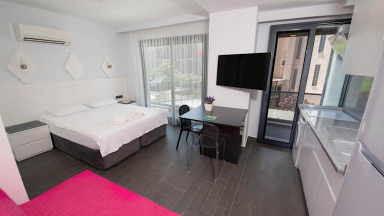 Die klimatisierten Zimmer im Mert Otel sind gut ausgestattet und verfügen über einen Kleiderschrank, einen Wasserkocher, einen Kühlschrank, einen Geschirrspüler, einen Safe, einen Flachbild-TV, einen Balkon sowie ein eigenes Badezimmer mit Dusche. Alle Zimmer sind mit Bettwäsche und Handtüchern ausgestattet. Tägliche Reinigung sorgt für ein angenehmes Ambiente während des Aufenthalts.