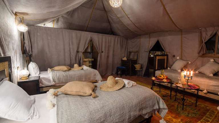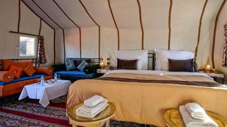 Merzouga Luxury Dunes Camp bietet eine einzigartige und luxuriöse Erfahrung in der Wüste mit kostenlosen Parkiermöglichkeiten und Internetzugang.