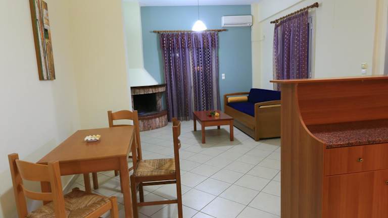 Die Zimmer im Mesogeios Hotel sind ausgestattet mit einer Klimaanlage, einer voll ausgestatteten Küche und einem Flachbild-TV. Jedes Zimmer verfügt über ein eigenes Badezimmer mit Dusche, kostenlosen Pflegeprodukten und einem Haartrockner. Gäste erhalten zudem täglich eine Reinigung.