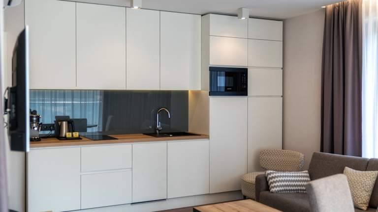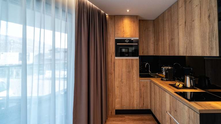Für die Gäste wird ein Frühstück angeboten, das als Buffet mit kontinentalen und vegetarischen Optionen bereitgestellt wird. Eine voll ausgestattete Küche in den Apartments ermöglicht zudem die Zubereitung von eigenen Mahlzeiten.