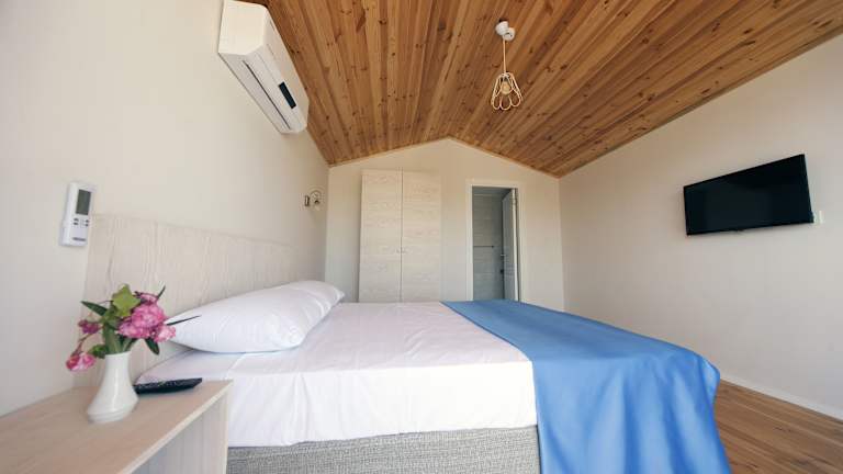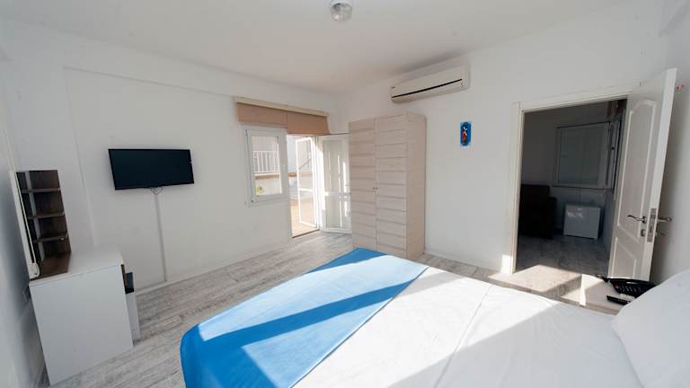Jedes Zimmer in Metins Gümüşlük ist mit Klimaanlage, einem Kleiderschrank, einer Terrasse mit Meerblick, einem eigenen Badezimmer, einem Flachbild-TV, Bettwäsche und Handtüchern ausgestattet. Alle Gästezimmer bieten des Weiteren einen Kühlschrank. Die Zimmer sind schallisoliert und bieten Bequemlichkeit für einen erholsamen Aufenthalt.