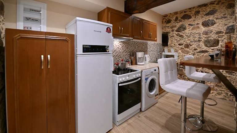 Essenslieferungen in die Unterkunft sind möglich. Zu den Annehmlichkeiten gehört ein Kühlschrank und ein Ofen in der voll ausgestatteten Küche, um Mahlzeiten selbst zuzubereiten.