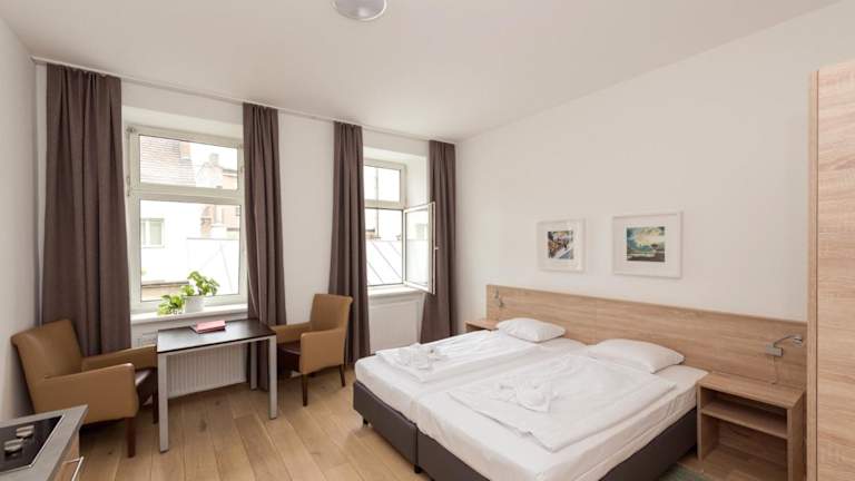 In den Unterkünften steht ein Wasserkocher bereit. In den Apartments ist zudem eine Küche vorhanden, die es ermöglicht, eigene Mahlzeiten zuzubereiten. Für zusätzliche Verpflegungsmöglichkeiten sind in der Umgebung Restaurants und Cafés zu finden. Es wird eine Auswahl an Frühstücksoptionen angeboten, darunter auch Gipfeli und Zopf.
