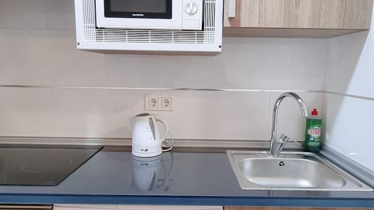 Die Ferienwohnung besteht aus einem Schlafzimmer, einem Wohnzimmer sowie einer voll ausgestatteten Küche mit Kühlschrank und Kaffeemaschine. Des Weiteren sind ein Badezimmer mit Dusche und kostenlosen Pflegeprodukten sowie Handtücher und Bettwäsche vorhanden.