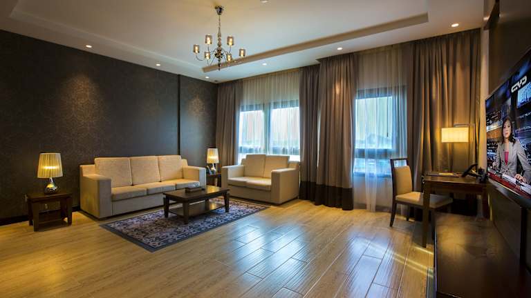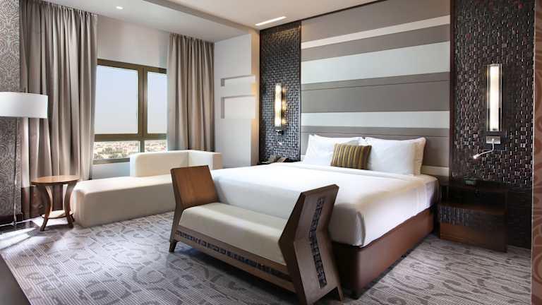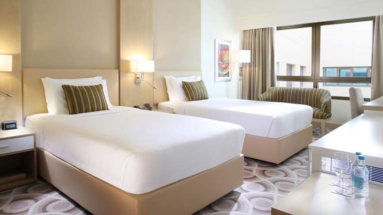 Die Zimmer sind mit Klimaanlage und Heizung ausgestattet und bieten ein Doppelbett oder Kingsize-Bett, eine Minibar, einen Safe sowie einen Schreibtisch. Zur Standardausstattung gehören eine Tee-/Kaffeemaschine, Bügelset, ein TV-Gerät und Wifi. Die Badezimmer sind mit Dusche, Badewanne und Bidet ausgestattet und bieten zudem Haartrockner, Kosmetikspiegel und Bademäntel. Family- und Nichtraucherzimmer sind ebenfalls verfügbar.