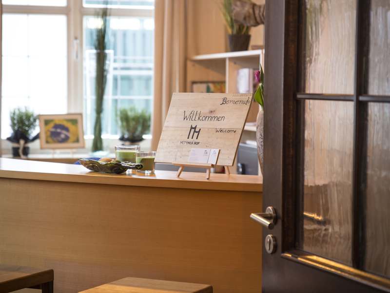 Der Mettner Hof präsentiert sich als einladende Unterkunft mit einem Garten, einer Terrasse und einer Bar. Die Empfangsmitarbeiter sprechen Tschechisch, Deutsch und Englisch, was auf die internationale Ausrichtung des Hauses hinweist. Das Restaurant bietet brasilianische und deutsche Küche, wobei montags bis mittwochs kein Service besteht.
